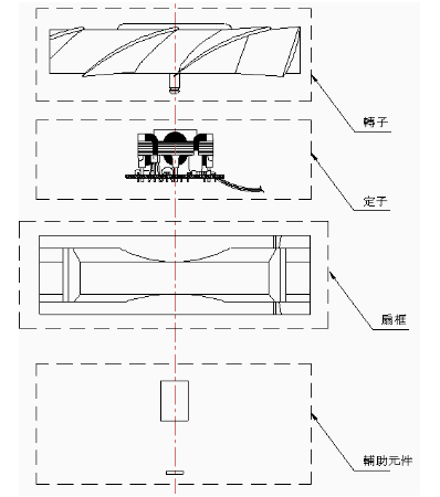 直流風扇主要由轉子、定子、扇框和其它輔助元件(如軸承/Bearing/扣環等)組合而成。目前各商家推出不同名稱叫法風扇,只是在基本結構上作一些完善,但都不能脫離以下組合原件。